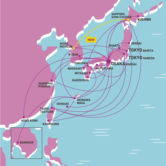 仙台以外に台北行とソウル行は同じくらいありますね。