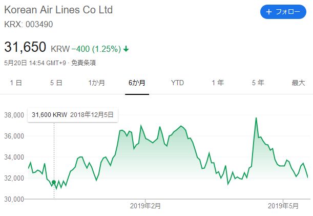 また大韓航空株を32000ウォンで買っている