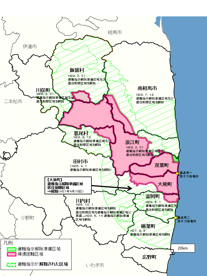 緑が避難指示解除準備区域 2019年4月現在