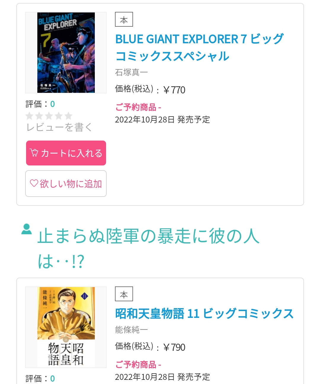 今週はブルージャイアントと昭和天皇物語が発売予定