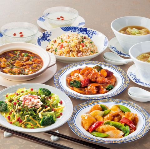 焼売、エビチリ、春巻、小籠包、青梗菜の炒め煮、麻婆豆腐、