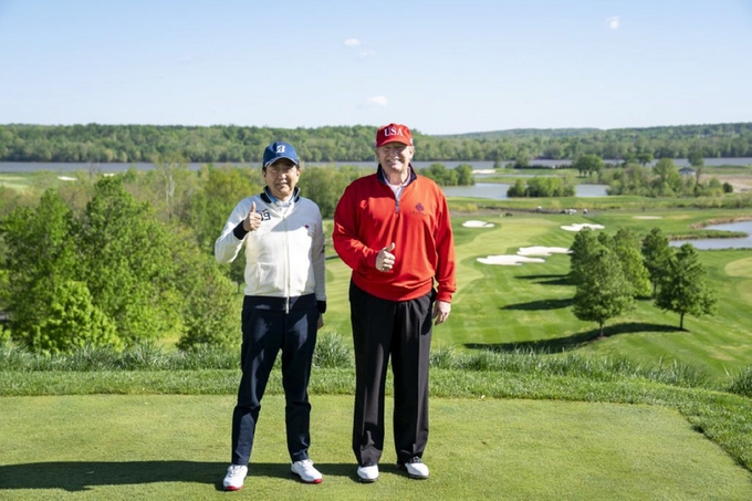 両国首脳は27日午前、バージニア州スターリングにあるトランプ大統領所有のトランプ・ナショナル・ゴルフクラブで一緒にゴルフをプレーし、両国の懸案について意見を交わした。両首脳のゴルフ会合は今回が4回目。