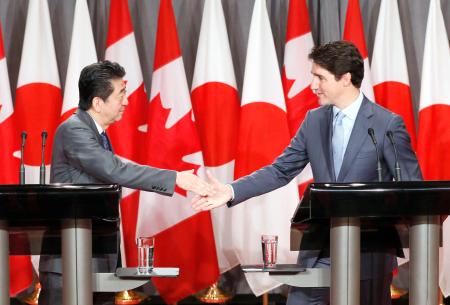 【オタワ共同】安倍晋三首相は28日(日本時間29日未明)、世界貿易機関(WTO)の紛争処理の在り方を見直す必要があるとして、6月に大阪で開く20カ国・地域(G20)首脳会合で協議する考えを表明した。カナダのトルドー首相との会談後の共同記者会見で「紛争解決が機能するよう改革することが不可欠だ。G20各国と建設的に議論したい」と述べた。韓国による福島など8県産水産物の輸入禁止措置をWTOが容認した判断が背景にある。