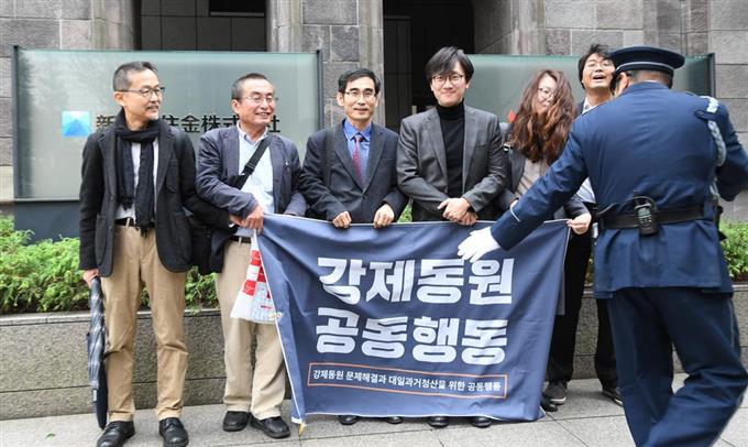5月1日、「元・徴用工」訴訟団は差し押さえ済みの日本製鉄と不二越の韓国内の資産に売却命令を出すよう、裁判所に要求した。