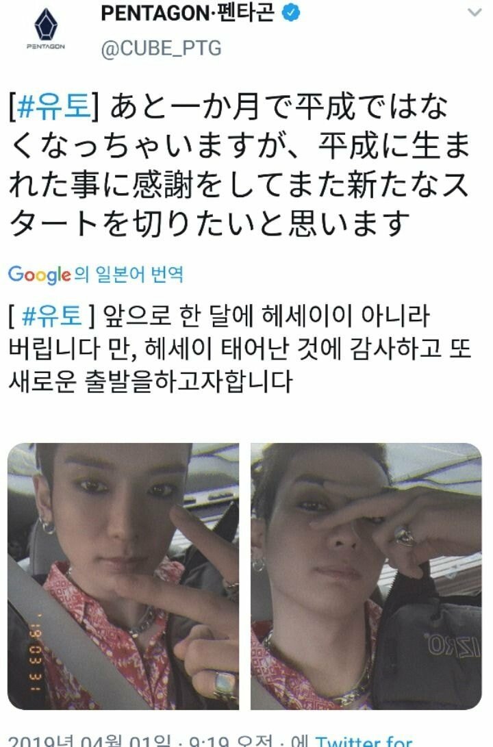 Pentagon의 일본인 멤버 yuto 연호 언급