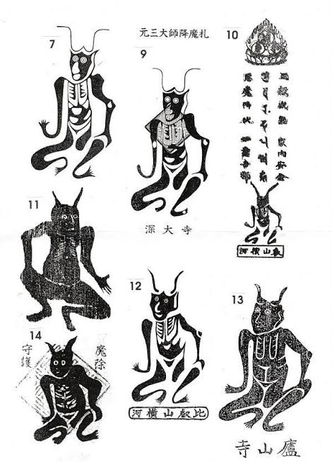魔除けの護符に描かれている絵のようです。