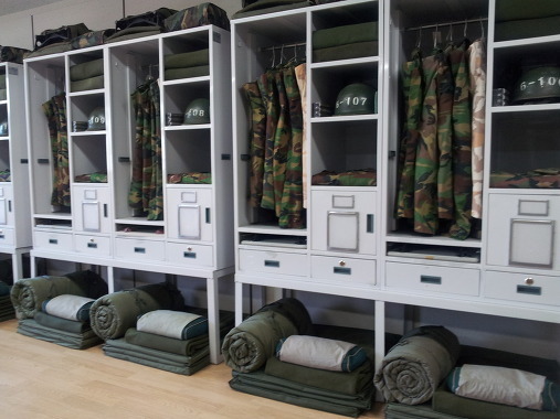 군대는 대학 기숙사가 아니다. 보급품은 한정되어 있으며, 개인공간은 캐비넷 1개.
