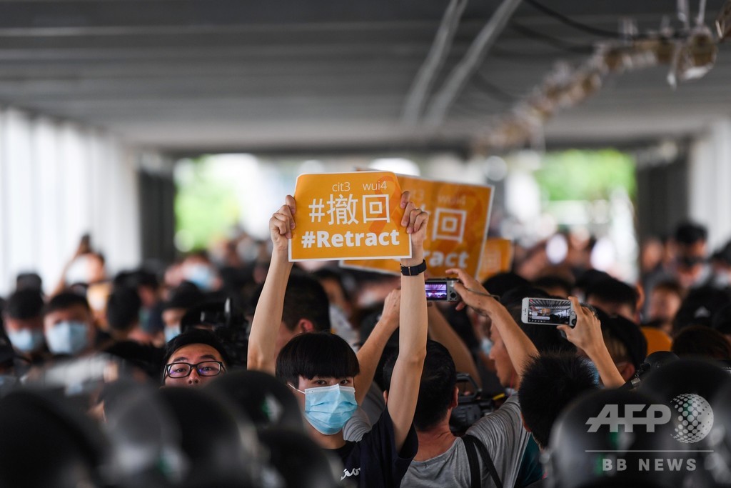 7週連続となった日中の大規模デモでは、香港市内にある中国政府の出先機関までデモ隊が行進し、庁舎に卵を投げつけたり落書きをしたりした。夜になると、市内中心部の商業地区で警察がデモ隊の排除に乗り出し、一帯は機動隊の放った催涙ガスに包まれ騒然となった。