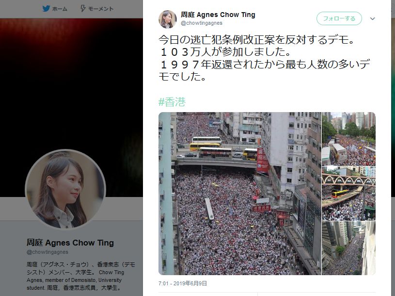 https://twitter.com/chowtingagnes/status/1140158175674433536返還の時にデモして返還させないようにしたら良かったのに