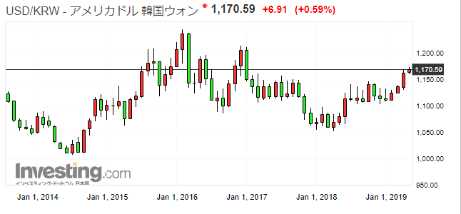 おーい、韓国の通貨が下落しているぞー