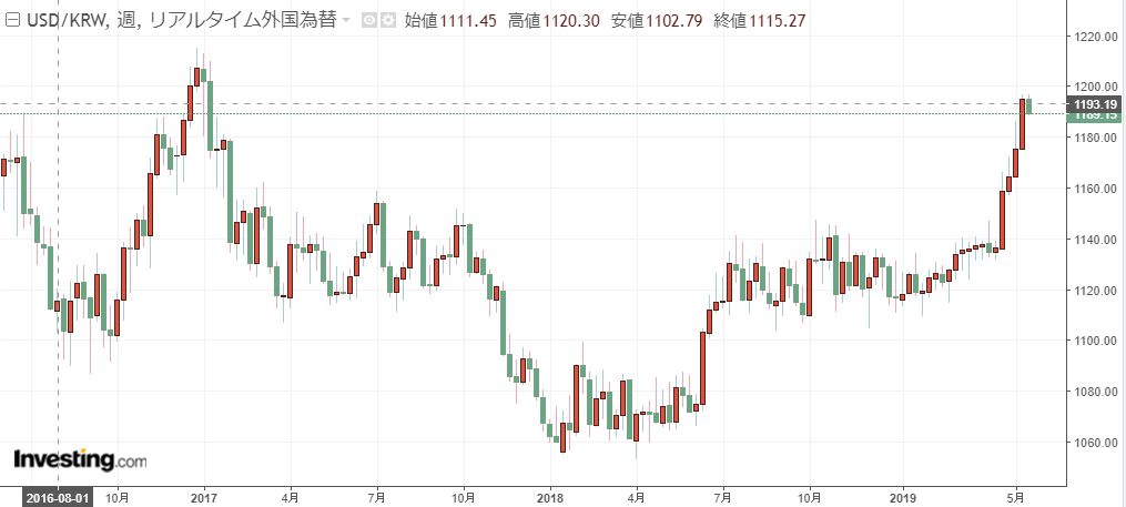 人民元がガツーーーーーーンと下がったのにこの状態は韓銀さん介入してるだろな