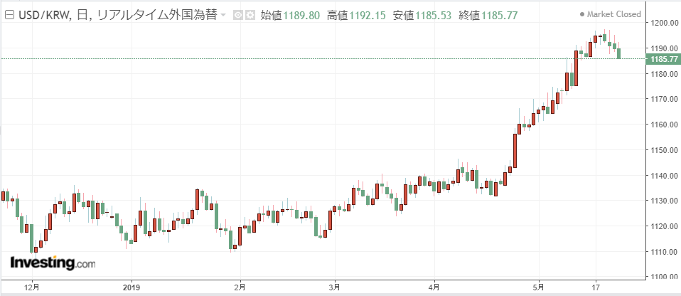 1ドル=1181ウォン