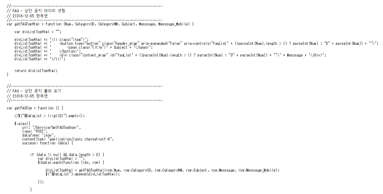 たとえば「上段のお知らせ 21018-12-05 ハン・ユヨン(FAQ – 상단 공지 불러 오기 21018-12-05 한유연)」とハングルで書かれている。