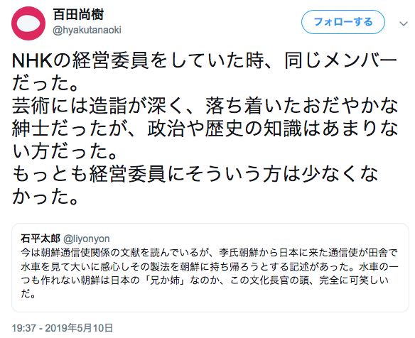 百田くんと同じ時期、NHKの経営委員をしていたらしい。>>7