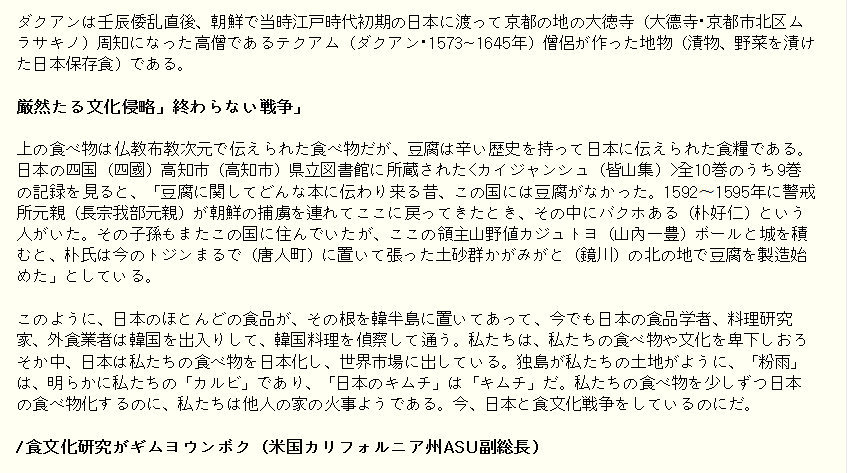 んで、文化泥棒呼ばわりして、日本が韓国を偵察して、食文化戦争を仕掛けてきているとも言っています。