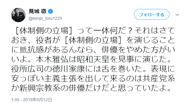 役者さんは反体制や左寄りであってもらいたい。