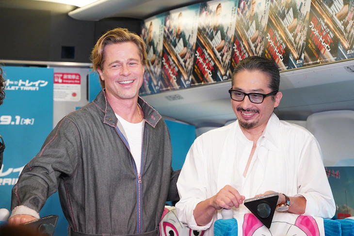 来日中のブラッド・ピットが「ブレット・トレイン」のプロモーションのため、東海道新幹線のぞみに乗車。東京発・京都行きの高速列車という映画の舞台にちなみ、本日8月23日、史上初となる走行中ののぞみ内でのレッドカーペットイベントに出席した。