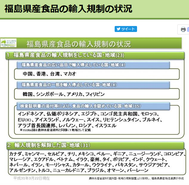 福島食品輸入禁止国