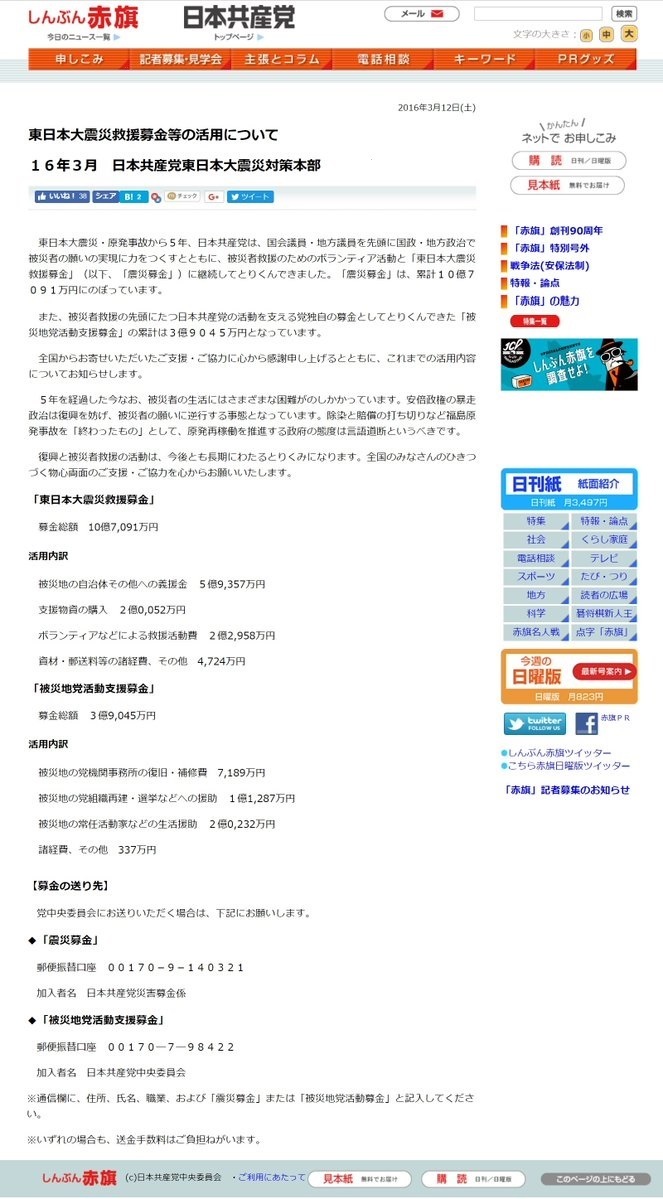 熊本地震の募金を流用した共産党