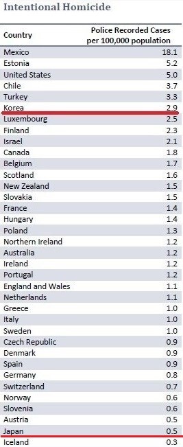日本と基準を合わせれば、韓国の犯罪率は1桁上がって日本の50倍以上になる。>>60