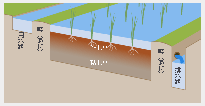 画像は近年の水田の構造だから排水の為の暗渠がある