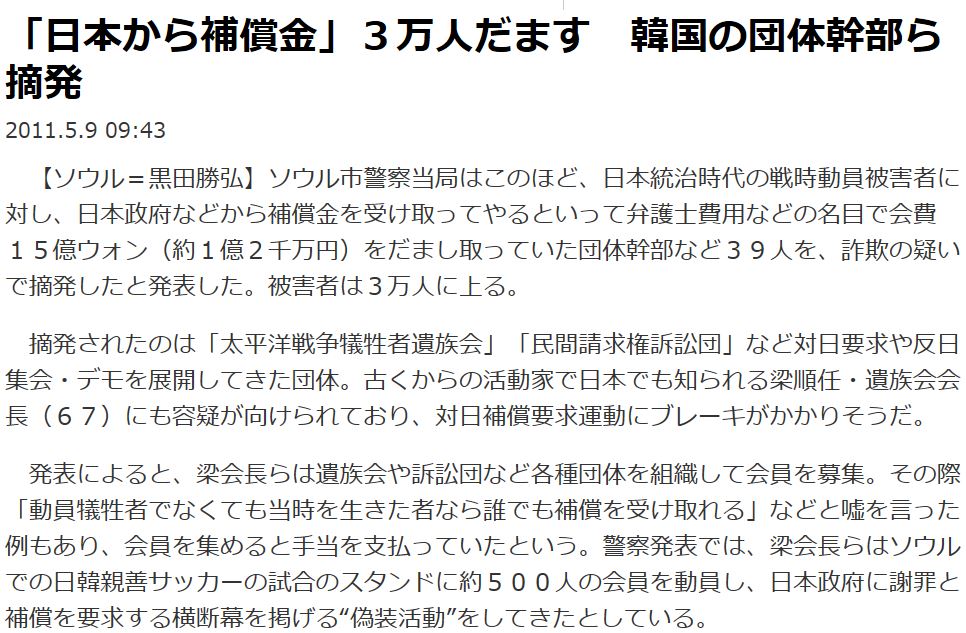 それにしても、詐欺師に満ち溢れていることは韓国人自身が一番よく知ってるだろうに、なんでこう騙される人が多いのかね。反日は金になる、だから止められない。