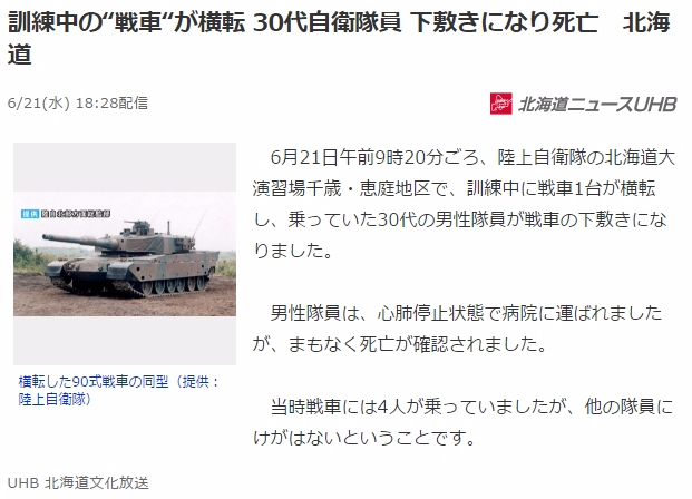 軍によると、陸軍20師団隷下部隊所属A軍曹が、15日昼12時30分ごろ、