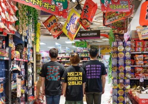 韓国企業のTシャツには、(日本に行く)飛行機代が勿体ないからドンキを作った と書いてある。