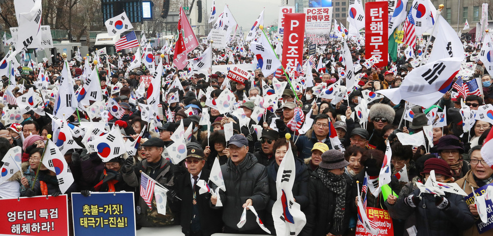 한국에는 '태극기 집회'로 명명되는 '우파 세력 집회'가 존재한다. 아래 사진이 그것.