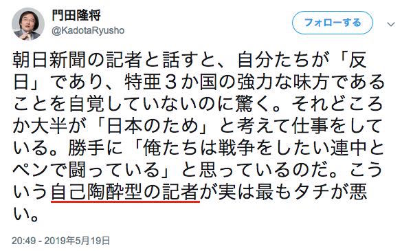 それが正しい答えってわけじゃないのに、表面だけのキレイゴトを押し付けるから、そういう自己満足型の思想家や人権ヤクザの台頭を許してしまった。朝も毎も戦前と変わらずポピュリズムで記事を書き瓦版と