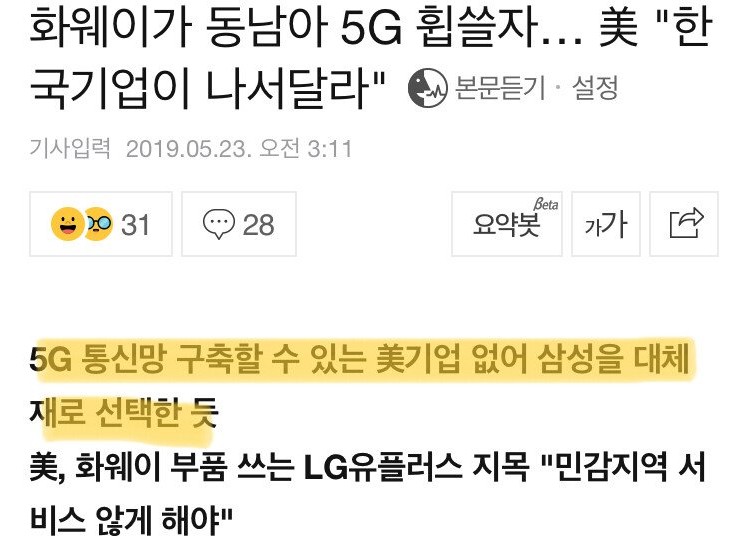 미국이, 전세계에, 한국 5G장비를 쓰라고 권고>>53