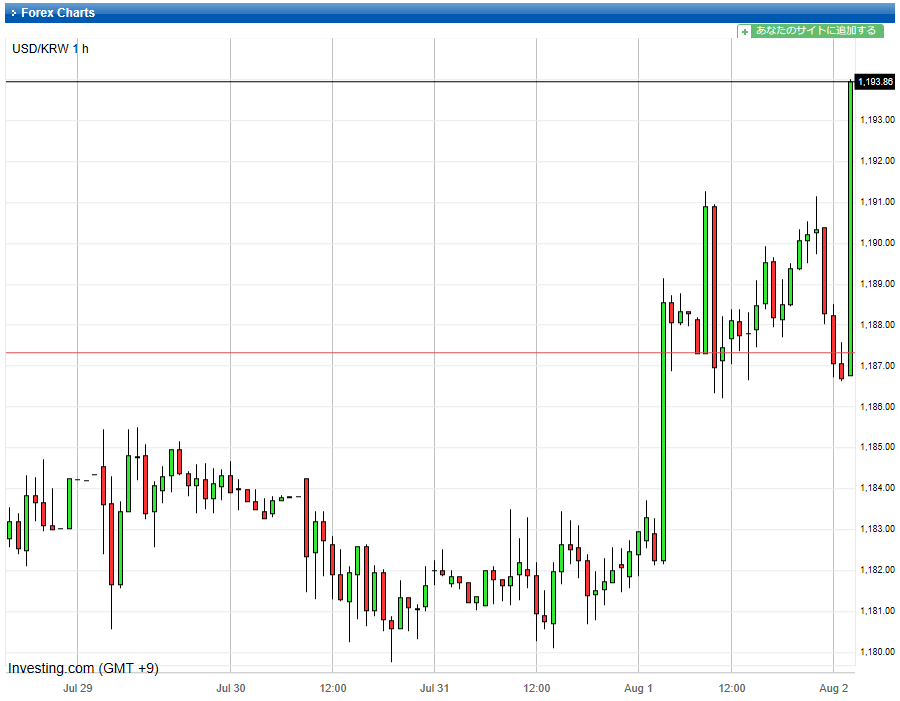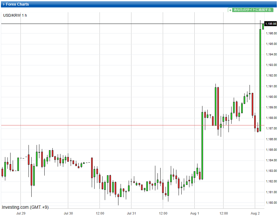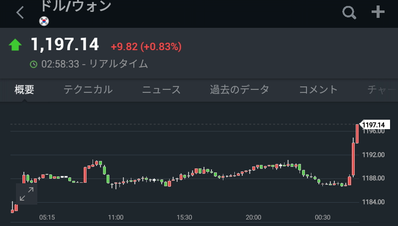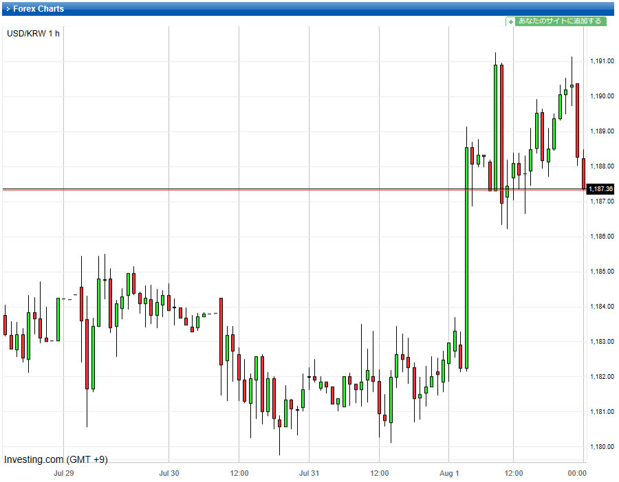 USD/KRW 1187今日で韓国の命運がどうなるか。