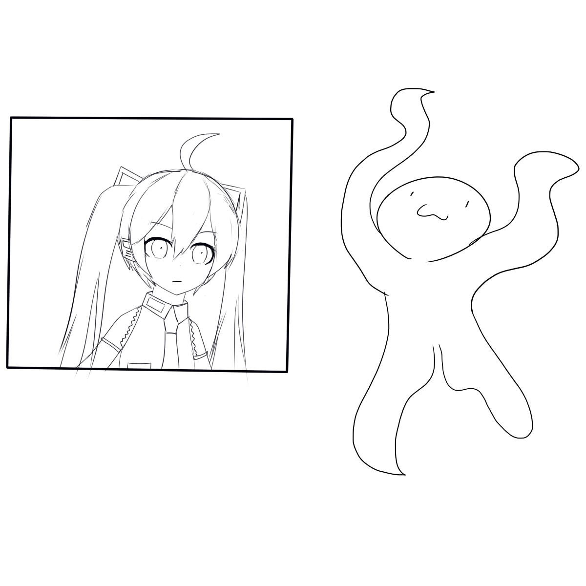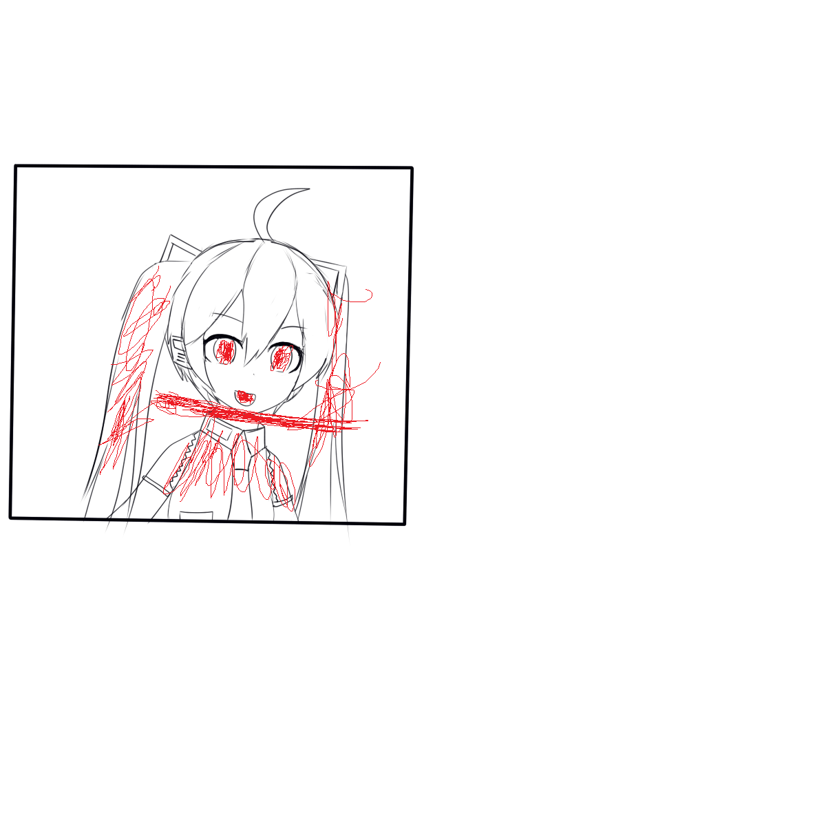 하츠네미쿠(Hatsune Miku)를 그렸는데 누가 채색 좀 해줘