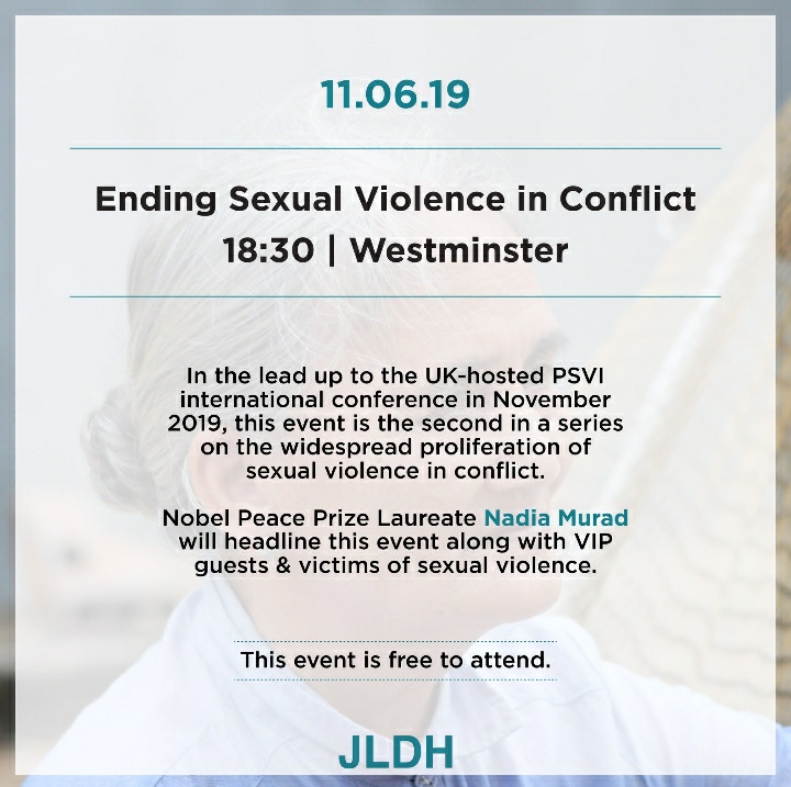 Following on from the Parliamentary launch in January, we would like to invite you to a reception on the 11th June 2019 from 6:30pm, to discuss the prevention of sexual violence in conflict.