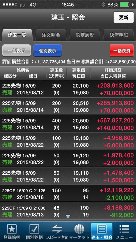 買ったらネットやったりTV見ながら監視して基本的に放置で買い値より下がったら切るだけです。現在のポジは、個別銘柄を全て利益確定して3日前に日経レバレッジETFを購入して