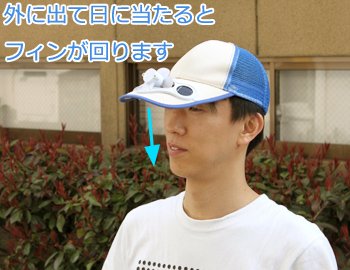 このキャップ、なんとソーラーパネルが付いていて、太陽光で回るファンが付いているのです!