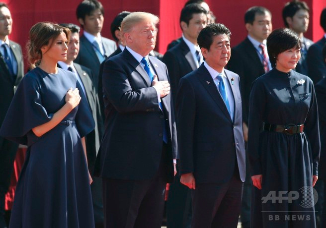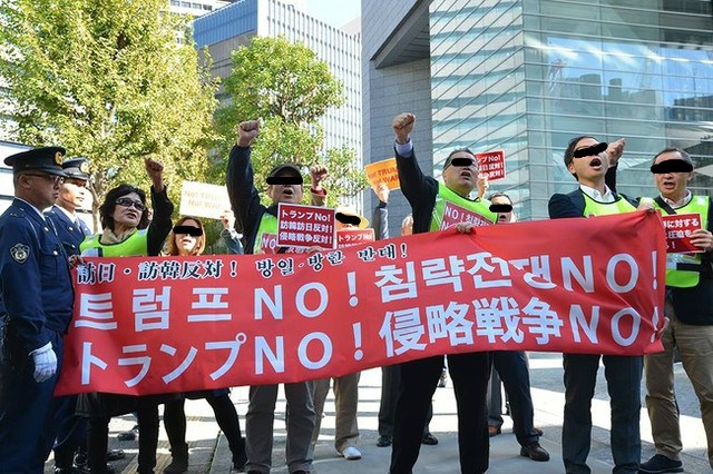 トランプ訪日に反対する人々がハングルを掲げて東京でデモ