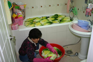 あの、ソウルの世宗大路でのキムチ漬けイベントも輸入した塩漬けの白菜を使ってる。목욕탕이 있기는한데. 우리집은 보통 샤워를 하지. 목욕은 시간이 너무 길어서