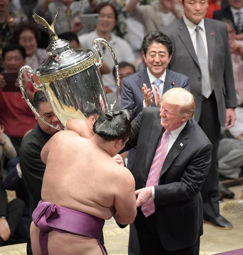 トランプ大統領が大相撲観戦。優勝力士にカップを授与