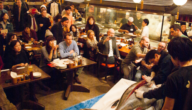 意見交換を行う夕食会というより、炉辺焼き屋で今日の打ち上げやってるようにしか思えないんだが。ブッシュjrが、日本の庶民の店に行きたいといって