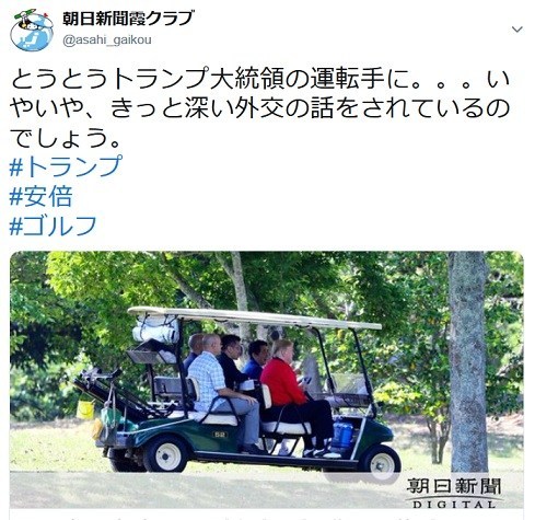 朝日新聞「トランプはただのデブのぶつかり合いの相撲を安倍に無理やり見せられて酷く退屈していた」