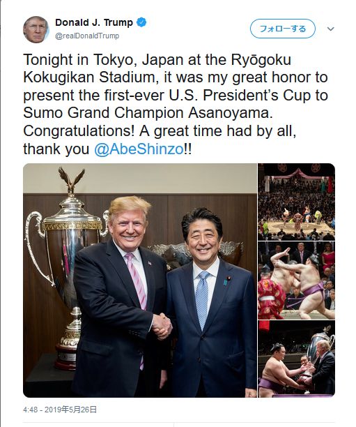 そもそも相撲が見たいと言ったのはトランプなんだから異例も何もないだろ>>1