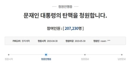 ムン・ジェイン大統領の弾劾を促す青瓦台国民請願が27日午前、回答ベースラインの20万人を突破