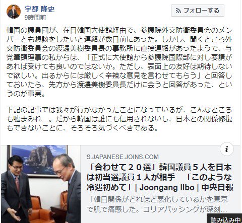 【韓国議員5人を日本は初当選議員が相手 「こんな冷遇初めて」】