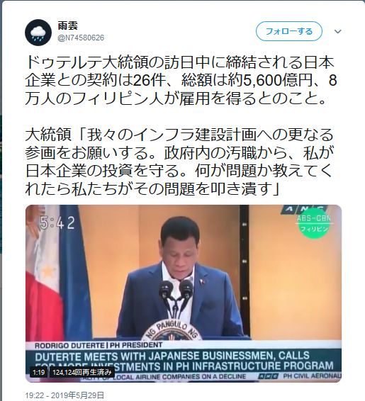 他国の投資を守るのは投資を呼び込む大前提だぞさすがドゥテルテ、リップサービスもあるだろうが「自分達が何をできるか?」をまず表明する。