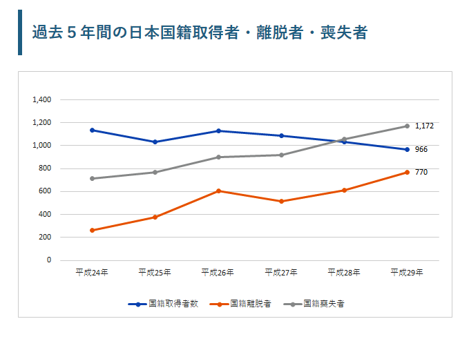 一方日本では1年間で2000人足らずほど、人口比を考えると約20倍も韓国の国籍放棄者が多い
