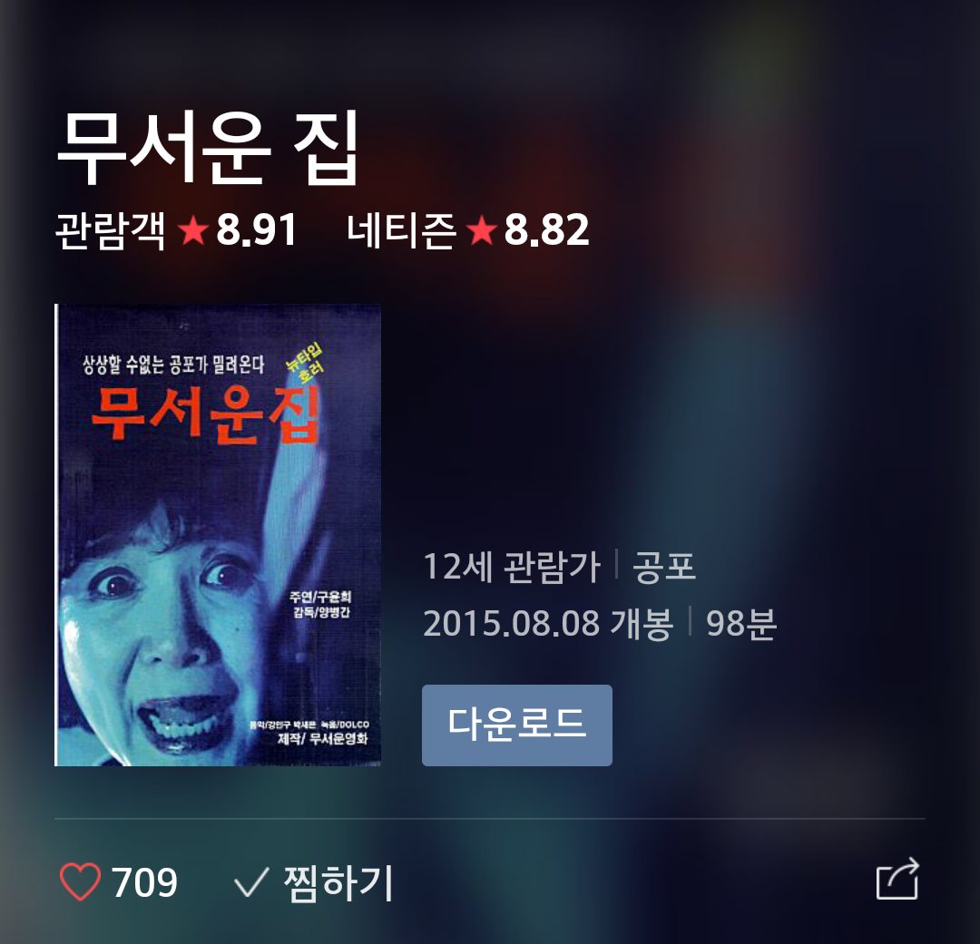나고 보고 싶었는데2015년 한국 영화의 최고 작품 '무서운 집' 을 추천합니다.