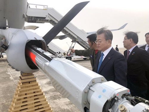 文在寅大統領は5日午後、海軍の任官式を終えて帰路の途中で金海空港に立ち寄り、大韓民国最初の空中給油機であるKC-330「シグナス」を視察している。