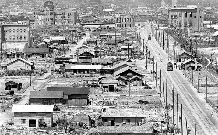 도쿄대공습과 원자폭탄 때문에, 폐허가 되었고