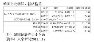 韓国の経済水準が100なら北朝鮮は良くても10